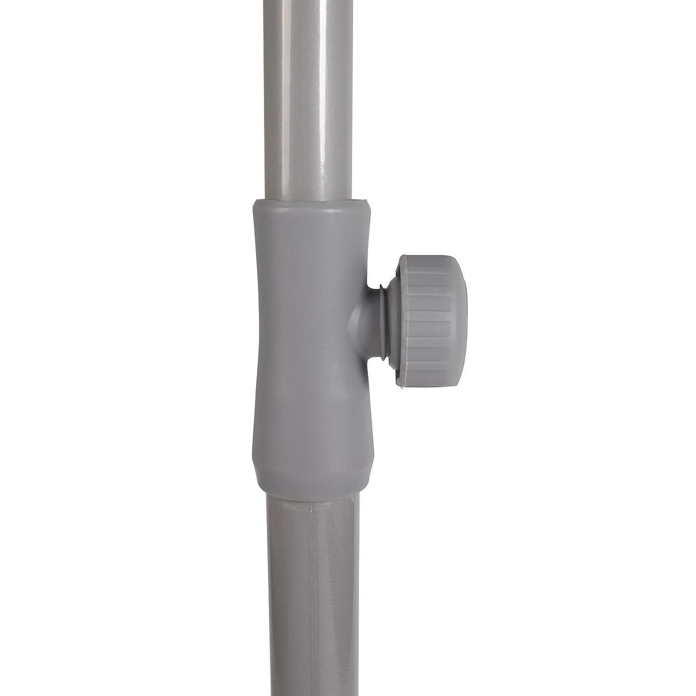 Een stevige vierkante parasol. Inclusief in hoogte verstelbare stalen steel voor in het zand in een parasolvoet of in een tafelopening. Ideaal voor op het strand
