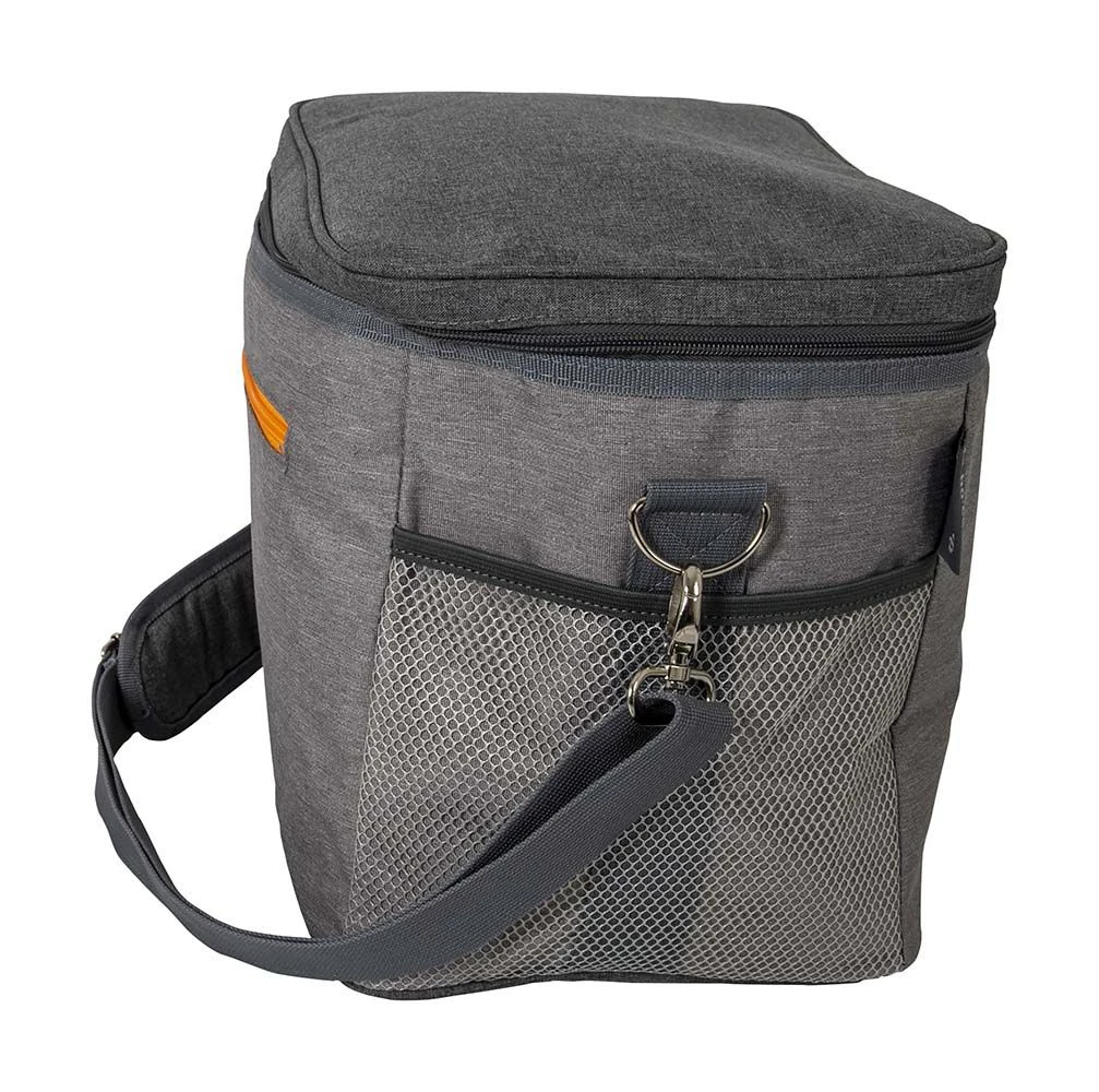 Een zeer handige koeltas. Uitstekende isolerende werking door het EVA isolatie materiaal. De koeltas is voorzien van een handige draagriem, een voorvakje met rits en 2 mesh zijvakjes.