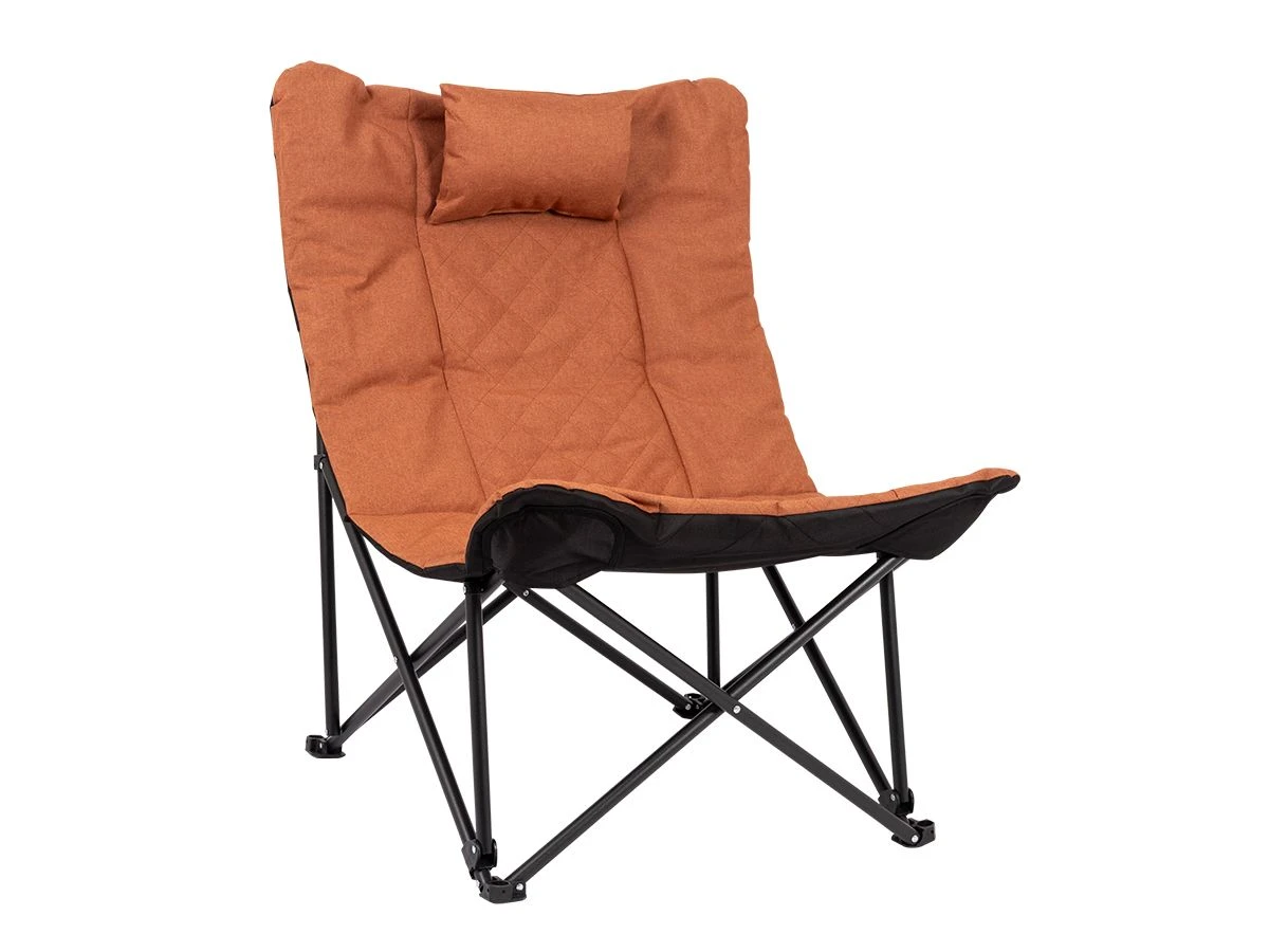 Een stoere en comfortable relaxstoel met industriële uistraling. De stoel is voorzien van een stevig en lichtgewicht stalen frame. Met een gepolsterde Cationic bekleding waarin een stijlvol patroon van stiksels is verwerkt. Inclusief comfortabel hoofdkussen en een luxe draagtas. Bovendien is het frame inklapbaar waardoor de stoel eenvoudig is mee te nemen. Een ideale stoel voor in de tuin of op de camping, maar ook op het balkon en in de woonkamer.