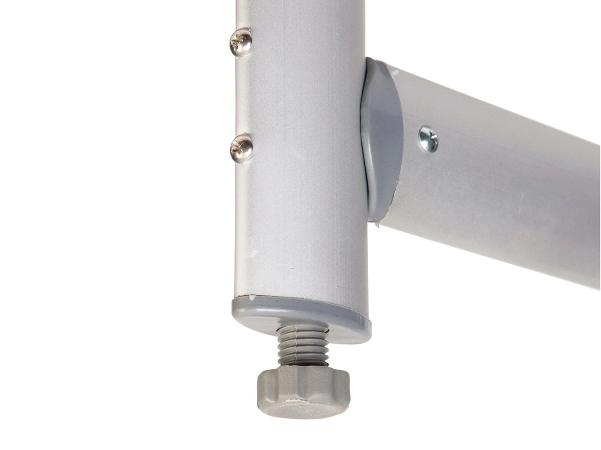 De tafel biedt ruimte voor 4 personen en heeft een afmeting van 120 x 80 cm. De tafel is in 2 hoogtes te verstellen, 36 cm en 70 cm. De poten zijn voorzien van handige stelvoetjes, zodat je de tafel overal waterpas neer kunt zetten. Het tafelblad is water- en hittebestendig, hierdoor kun je er dus ook je kooktoestel op gebruiken of de tafel buiten in de regen laten staan.