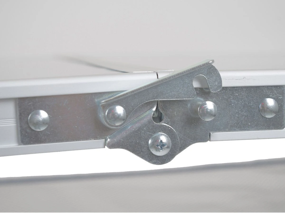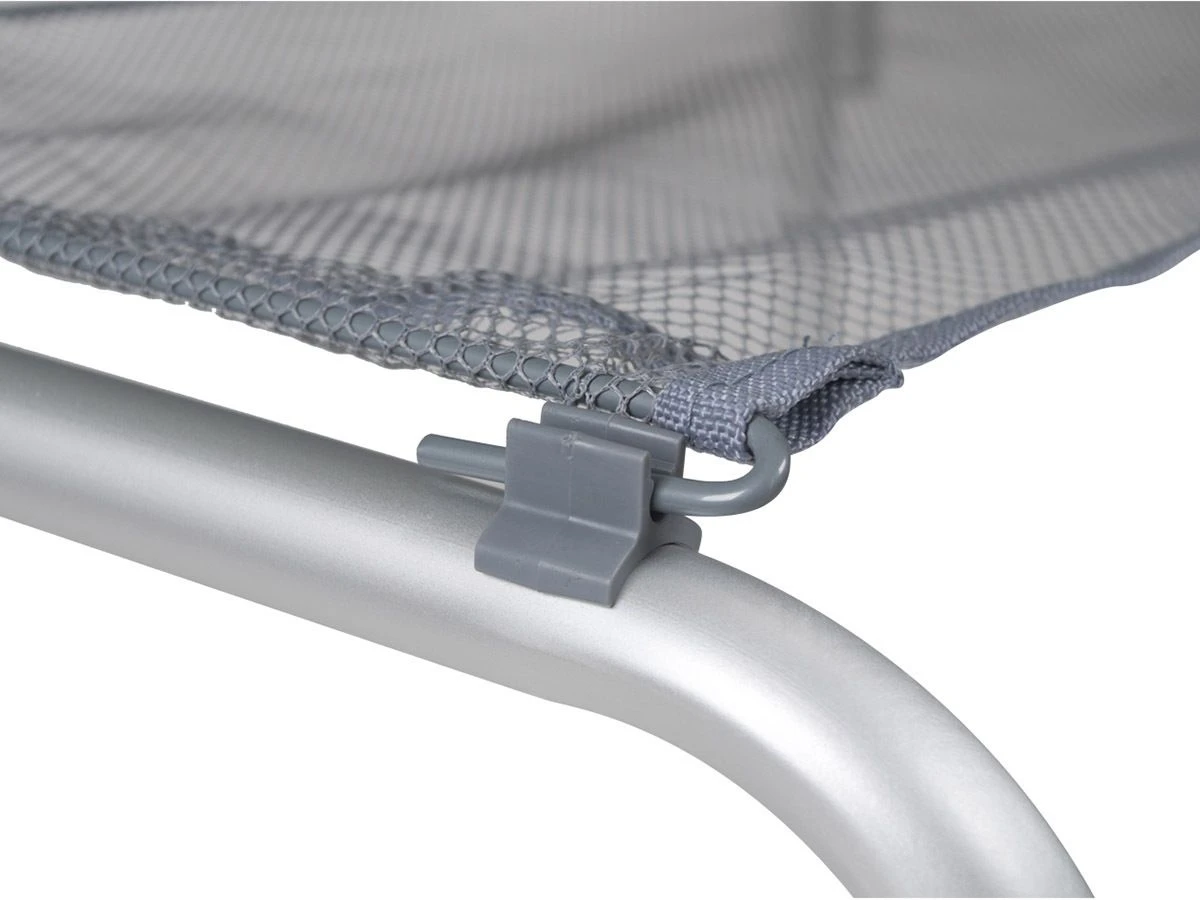 De tafel is voorzien van een lichtgewicht aluminium onderstel en een aluminium blad. De tafel is dus water- en hitte bestendig!