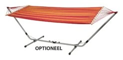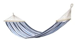 Een stijlvolle en zeer stevige hangmat. Haalt het échte vakantiegevoel naar boven! Gemaakt van stevig 320gr/m² katoen/polyester. De hangmat beschikt over een spreidstok van 118 cm aan de uiteinden waardoor de stof volledig open blijft.