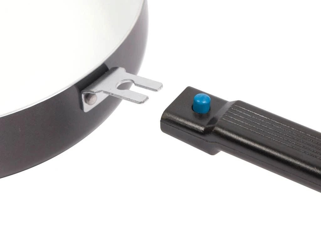 De Bo-Camp Sprint Eco Ø 24 cm wokpan is een compacte pan met keramische coating. De wokpan is ruimtebesparend doordat het handvat afneembaar is. Geschikt om te bakken, maar is ook geschikt als ovenschaal zodra de steel eraf is.