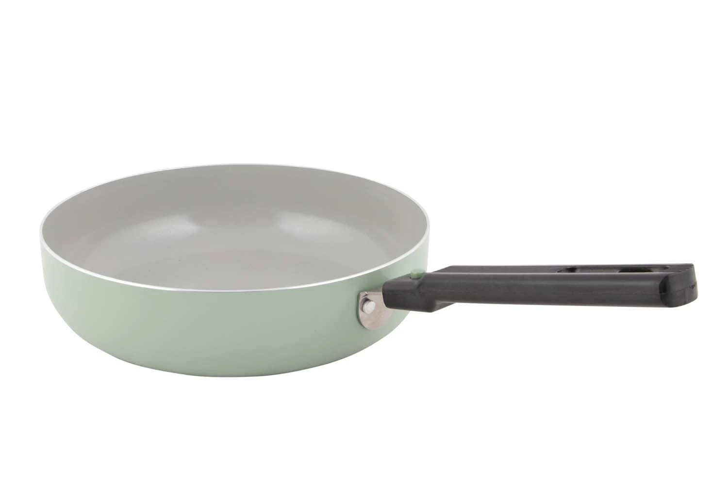 Een compacte en kleurrijke hapjespan, ook wel sauteerpan genoemd. Deze pan is voorzien van een keramische coating, hierdoor wordt aanbakken voorkomen, is de pan kraswerend en is de pan eenvoudig te reinigen. Daarnaast is het gezonder koken, doordat er minder vet nodig is om te bakken. Geschikt voor de warmtebronnen gas, keramisch en elektrisch. Deze pan is ruimtebesparend door de afneembare handgreep. Dikte: 2,2 millimeter.