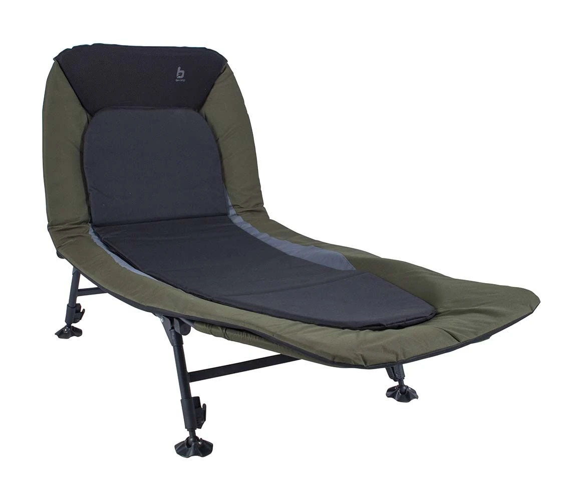 Een erg stevig en comfortabel veldbed, zeer geschikt voor vissers. Bekleding is gemaakt van stevig 600D Oxford Polyester en het frame van sterk staal. Zowel liggend als zittend te gebruiken door de verstelbare rugleuning. Daarnaast voorzien van een uitneembaar kussen. Geschikt voor elke ondergrond door de onafhankelijk verstelbare en verstevigde voeten. Ideaal voor langs de ongelijke waterkant. Het visbed is volledig opvouwbaar.